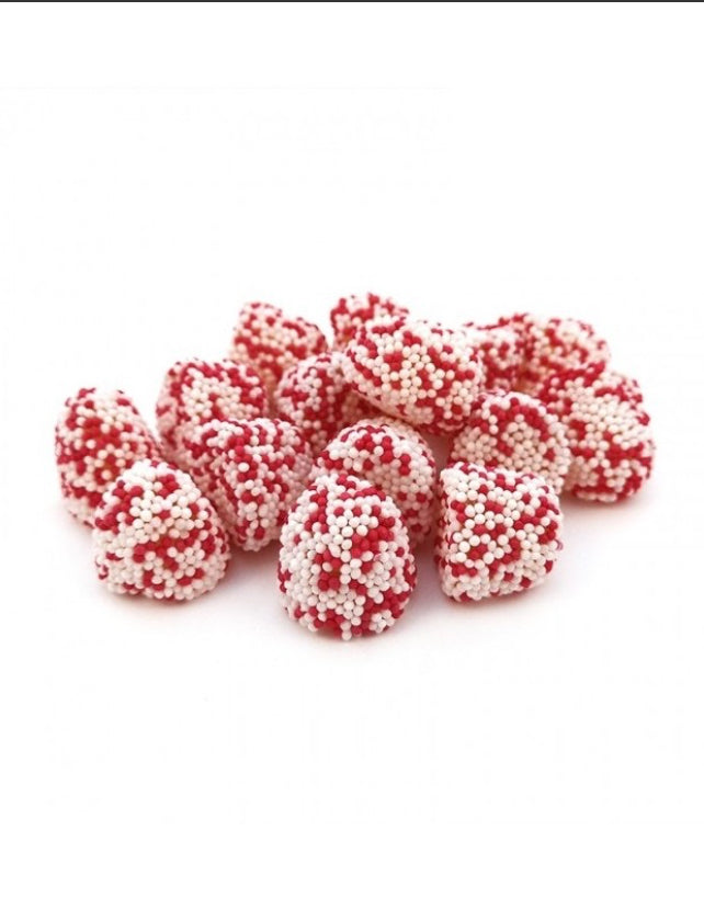 Ces bonbons gélifiés sont composés d'une gelée douce et onctueuse à l'intérieur, recouverte d'une couche de perles de sucre. Il s'agit de mûres de couleur blanche et rouge au délicieux goût de fraise et de crème.