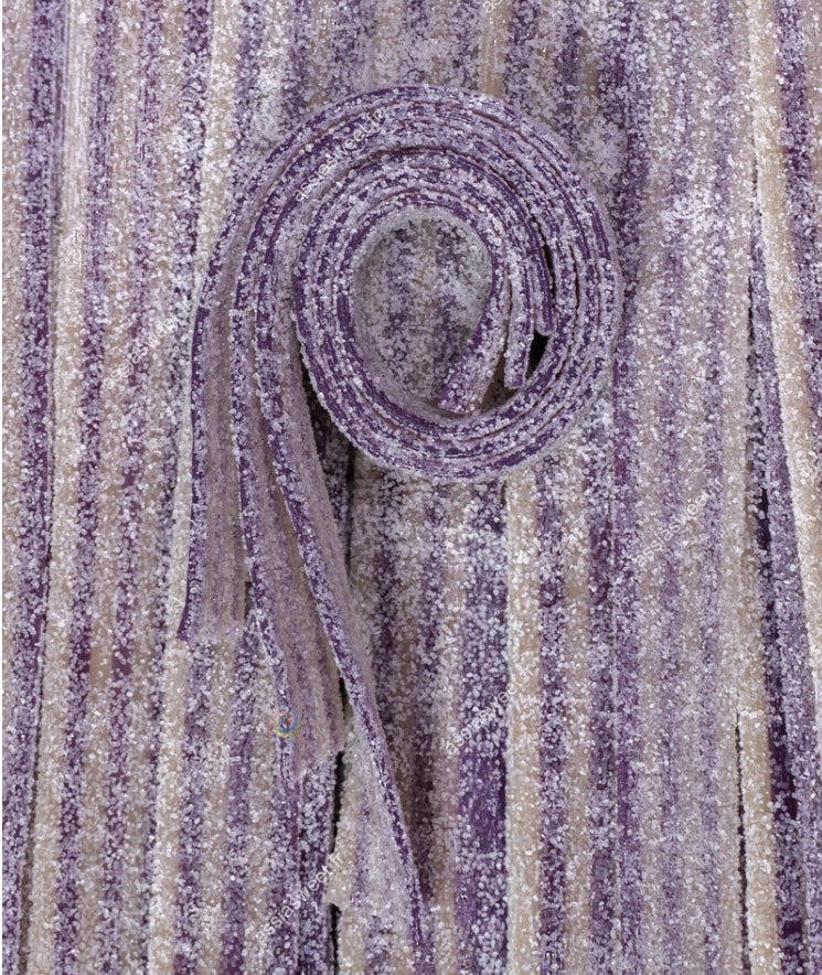 Ingredients: Sucre, Sirop de glucose-fructose, FARINE DE BLÉ, Eau, Acidulants : E330, E296, Graisse végétale (Noix de coco), Régulateur d’acidité : E350, Émulsifiant : E471, Arômes, Agent de conservation : E202, Coulorants E102*, E129*, E133, E341, E516.